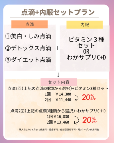 #総合内科#消化器内科 #内科診療 #美容内科 #美容クリニック#クリニック #美容医療 #大阪 #谷町 #谷町5丁目 #保険診療 #自由診療 #美容注射#美容点滴#美容点滴#新キャンペーン#キャンペーン#2月#3月#4月#美肌#美白#しみ#しわ#たるみ#免疫力アップ#疲労回復#回数券#お得